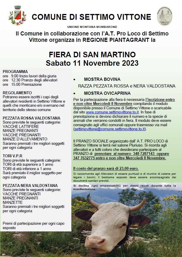 organizza per il giorno 11 Novembre 2023 in REGIONE PIANTAGRANT la FIERA DI SAN MARTINO 2023