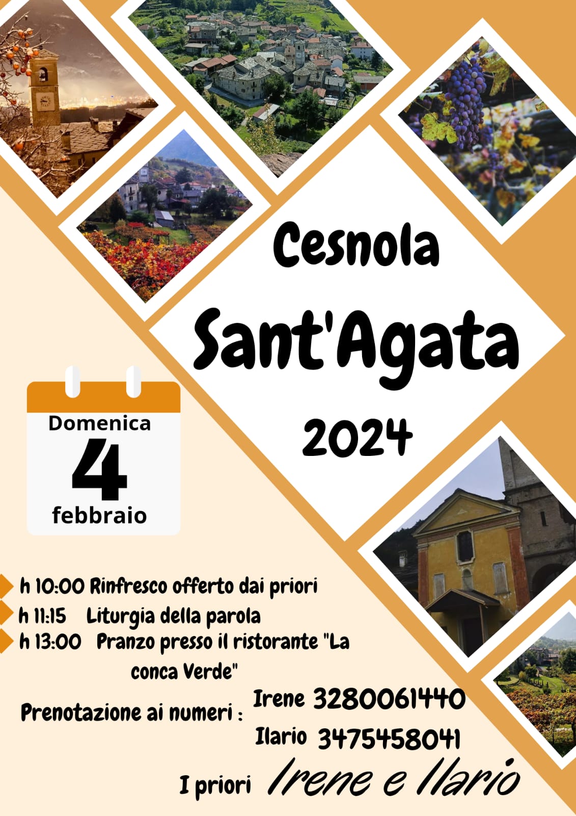 I priori Irene ed Ilario organizzano per Domenica 4 Febbraio 2024 la ricorrenza di S.Agata