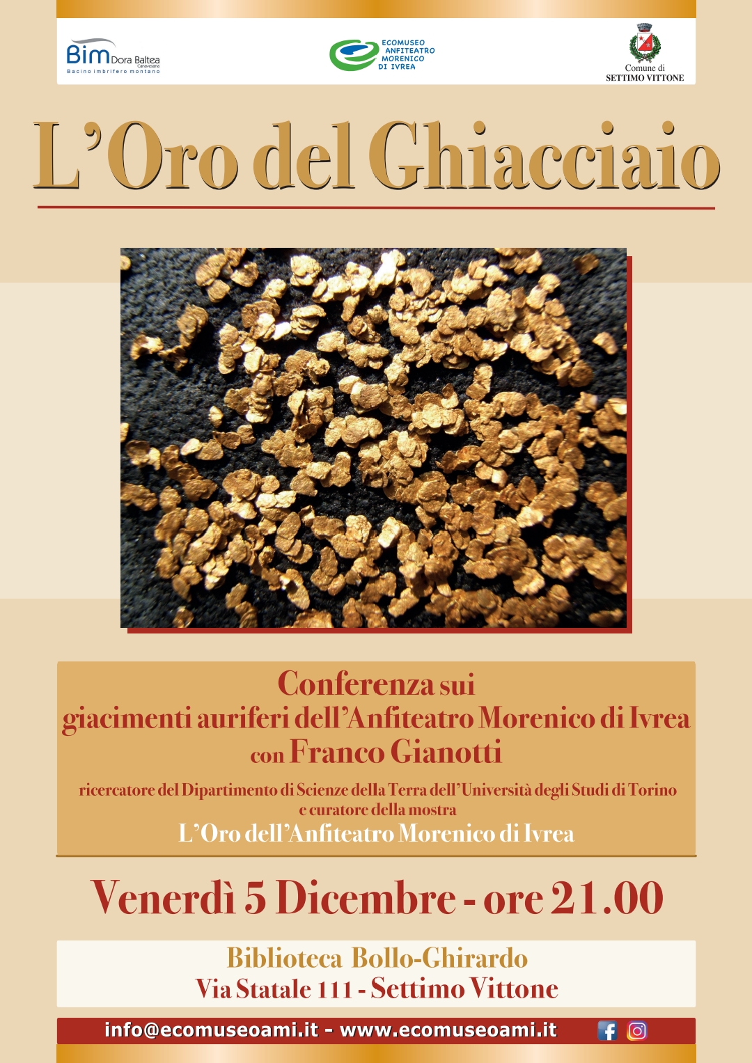Conferenza sui giacimenti auriferi dell'Anfiteatro Morenico di Ivrea con Franco Gianotti.